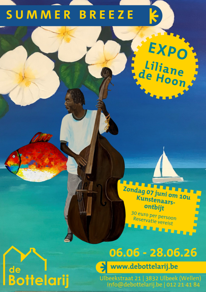 Van 6 tot en met 28 juni ontdek je in het eetcafé van de Bottelarij onder de noemer “Summer Breeze” de schilderijen van Liliane de Hoon, een eigentijdse kunstenares die kleur ademt in alles wat ze maakt.