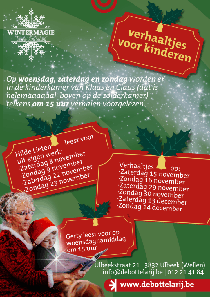 Op woensdag, zaterdag en zondag worden er in de kinderkamer van Klaas en Claus (dat is helemaaaaaal boven op de zolderkamer) telkens om 15 uur verhalen voorgelezen.